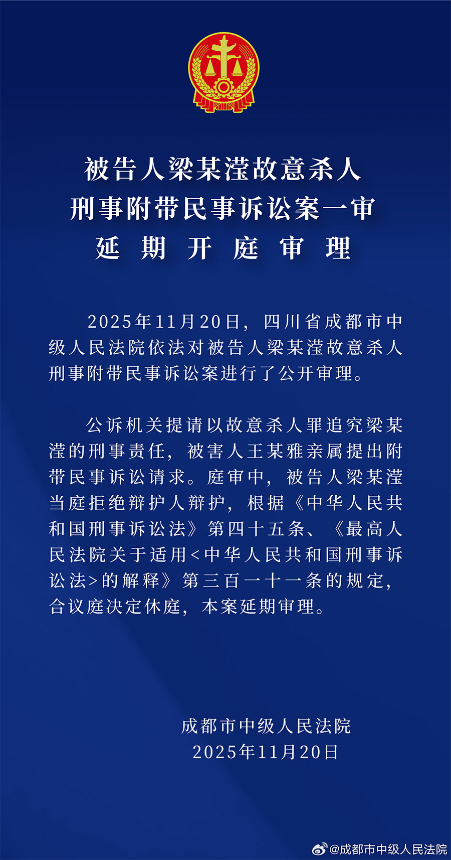 By - admin27岁女子家门口遭精神分裂者持刀捅刺身亡,法院通报:延期审理据四川省成都市中级人民法院官方微博11月20日消息,被告人梁某滢故意杀人刑事附带民事诉讼案一审延期开庭审理 。 Read More
